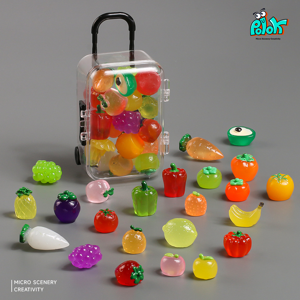 Mini Luminous Fruits and Vegetables Children's Gem Crystal Small Objects Play Home Toys Miniature Food Play Model