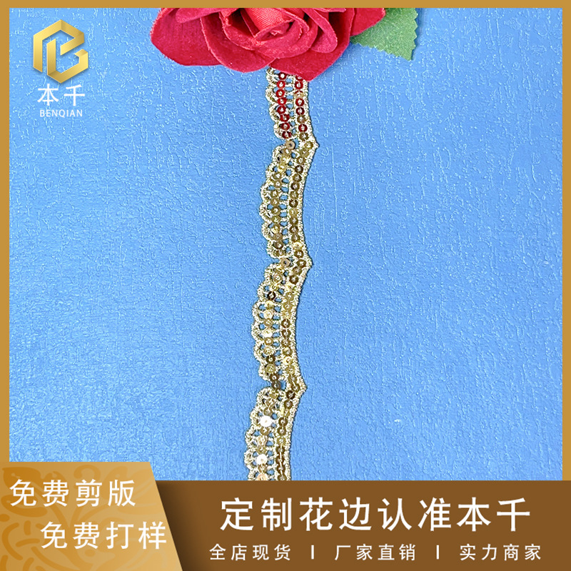 Unilateral small bar code gold thread water soluble sequin lace 1.5cm Lolita clothing clavicle chain DIY in stock wholesale