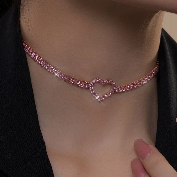 Cross-border hot selling pink shining love zircon claw chain clavicle chain fashion net red temperament all-match necklace