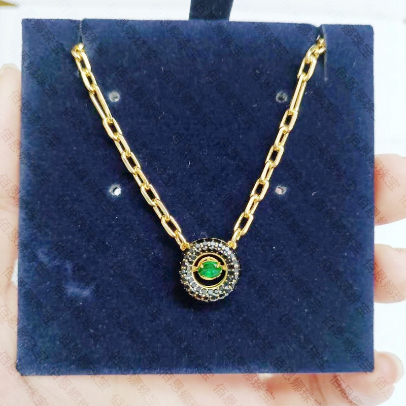 Shijia beating heart green diamond necklace smart dancing streamer necklace charming shining clavicle chain female