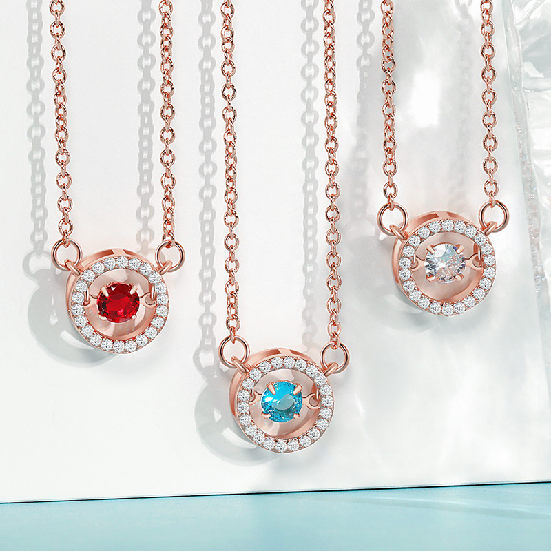 Shining smart round pendant chain niche design high sense color diamond round Main Stone beating heart necklace