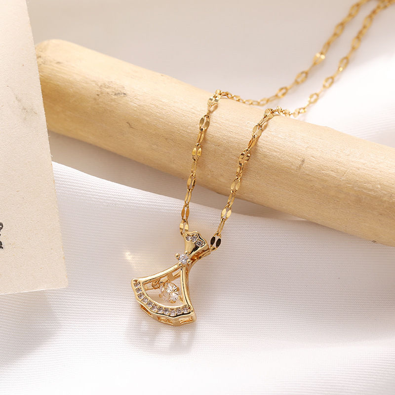 New Korean Style New Arrival Beating Heart Skirt Necklace Women's Simple Fashion Shine Fan Pendant Collarbone Chain Necklace Chain