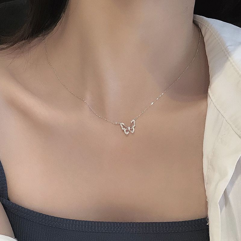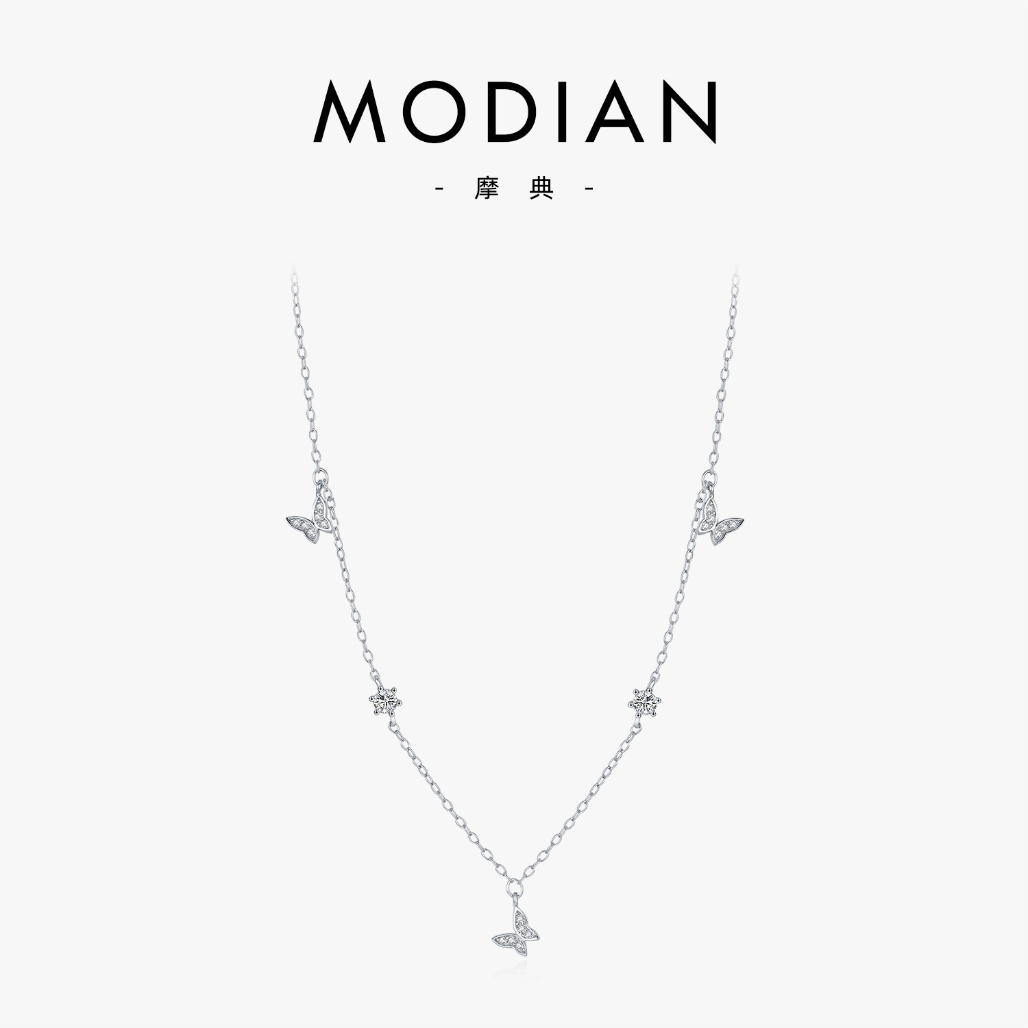 MODIAN MODIAN S925 Sterling Silver Butterfly Dance Necklace Female Sweet Elegant Cute Shiny Diamond Butterfly Clavicle Chain