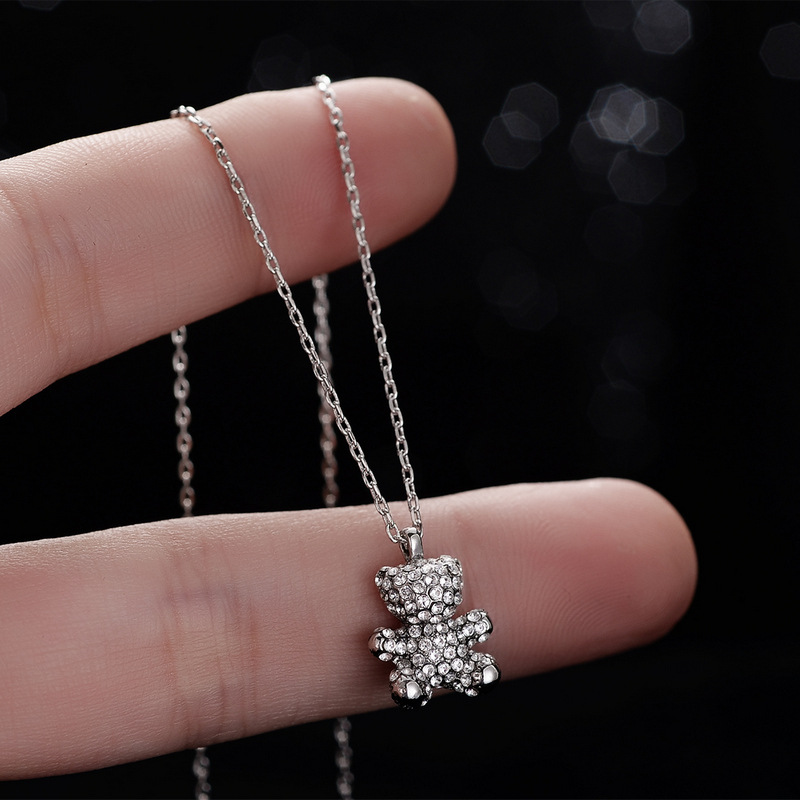 Sweet Casual Card Ventilated Shine Full Diamond Bear Pendant Clavicle Chain Women's Cute Baby Bear Necklace Necklace Gift