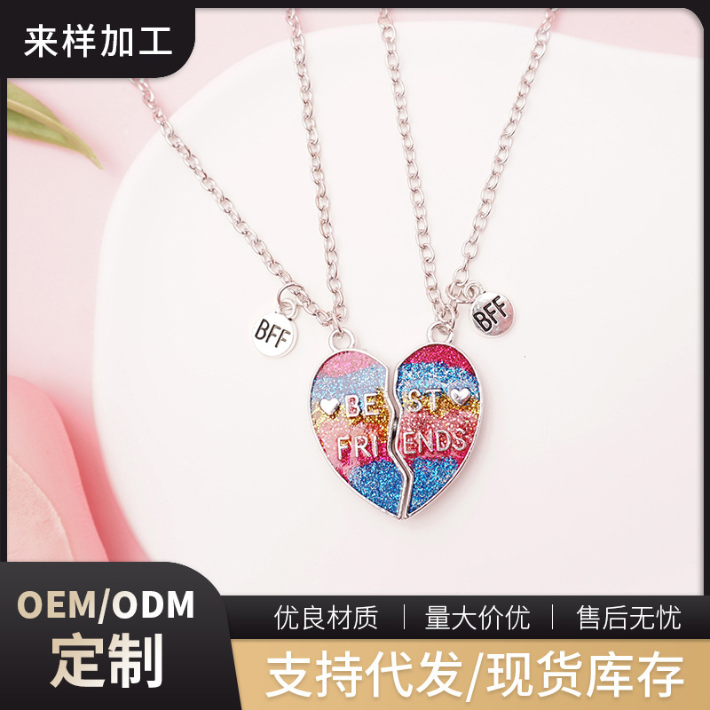 Cross-border hot-selling simple magnetic cute sequins love pendant necklace color bright color jewelry manufacturers wholesale