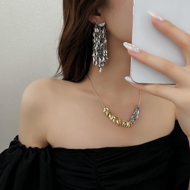 Exquisite cold style leaves sequins tassel earrings necklace fashionable simple high-end fashionable jewelry