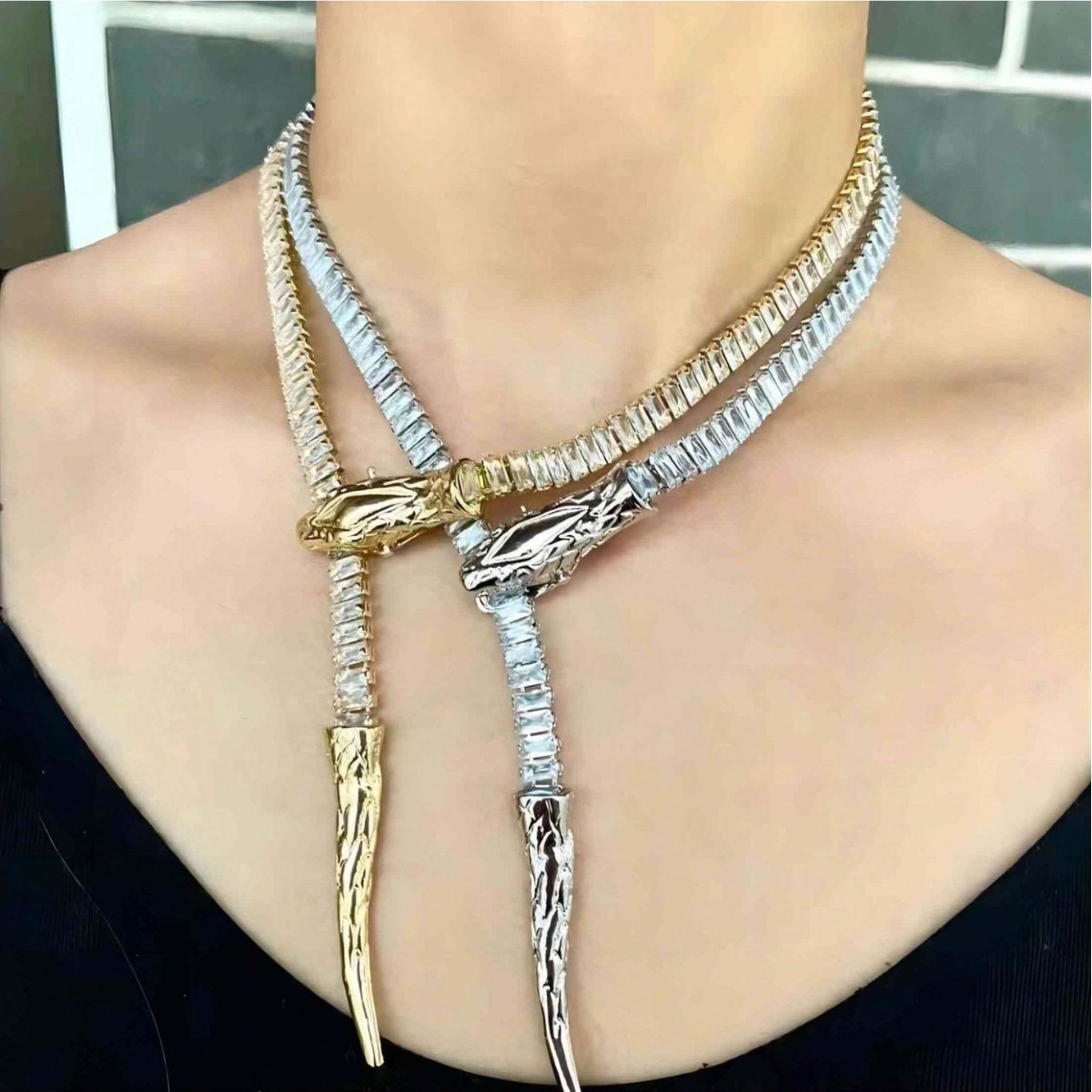 Fashionable and Interesting Sparkling Adjustable Snake Bone Rhinestone Necklace Casual Versatile and Interesting Necklace