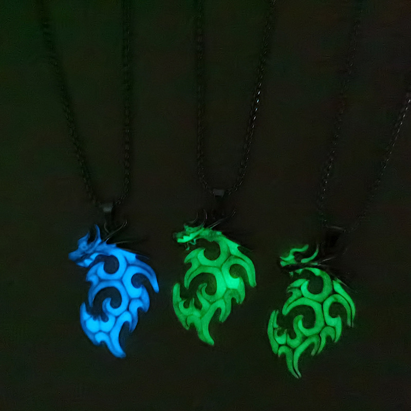 2023 new fashion luminous necklace personality trendy men hip hop cool stainless steel flame dragon pendant accessories