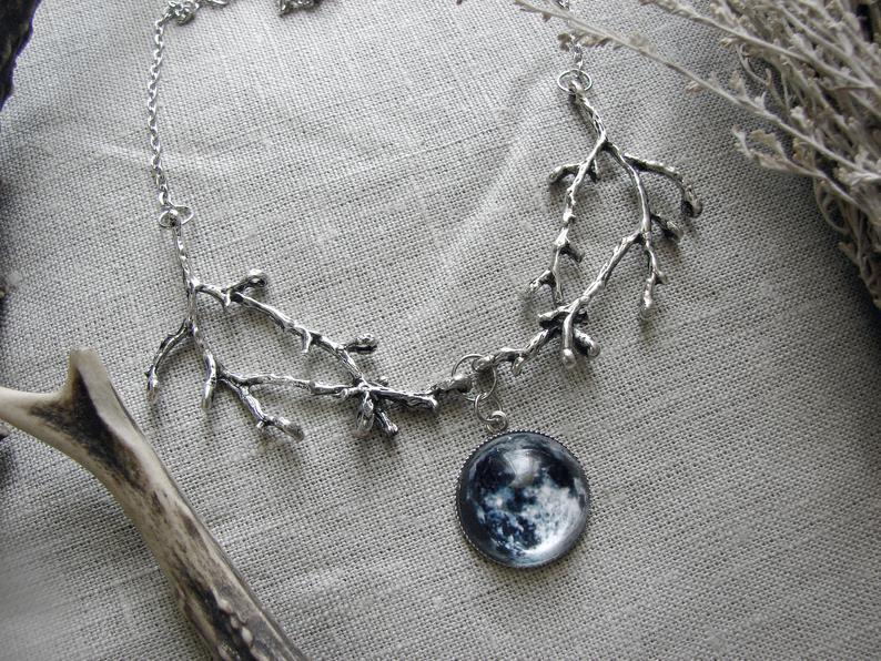 European and American Hanging Necklace New Moon Luminous Glass Necklace Branch Branch Pendant Alloy Jewelry Cross Border