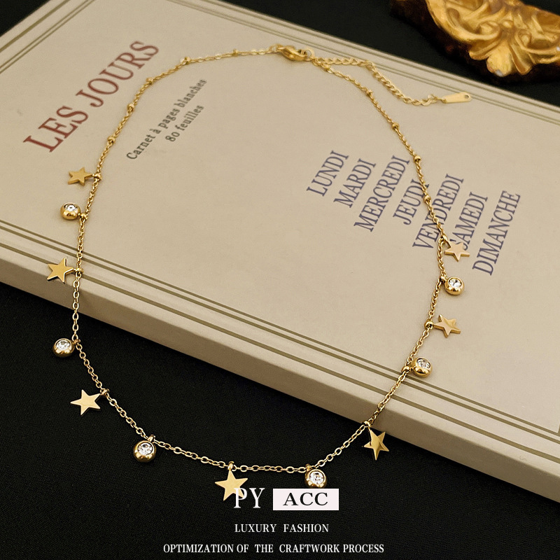 Fashion Shining Little Star Clavicle Chain Titanium Steel Stone Tuo with Diamond Cute Five-pointed Star Niche Elegant Necklace