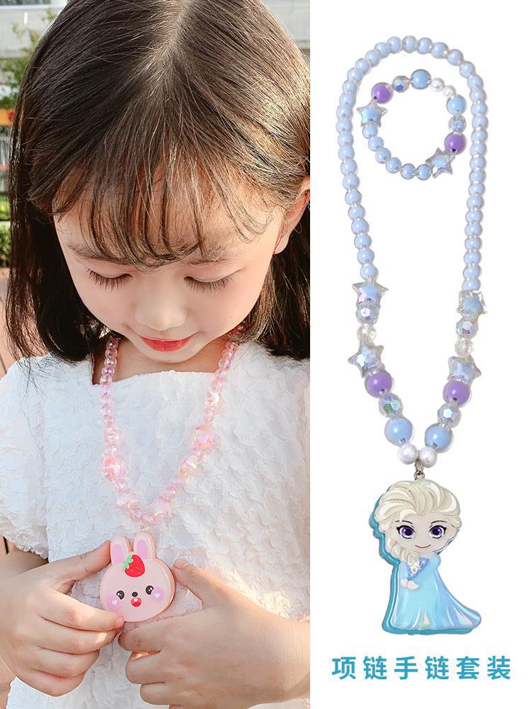 Children's Necklace Glow Girls Princess Aisha Frozen Kids Cute Bear Decorations Bracelet Set