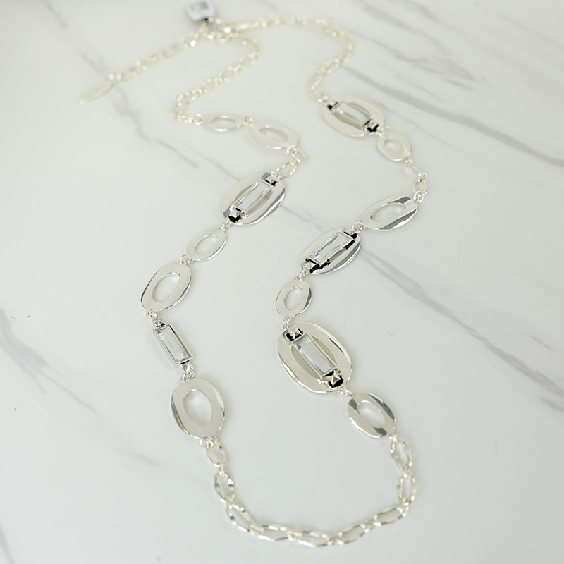 European and American style metal white gold inlaid gemstone shiny long necklace fashion trend exaggerated personalized female necklace jewelry