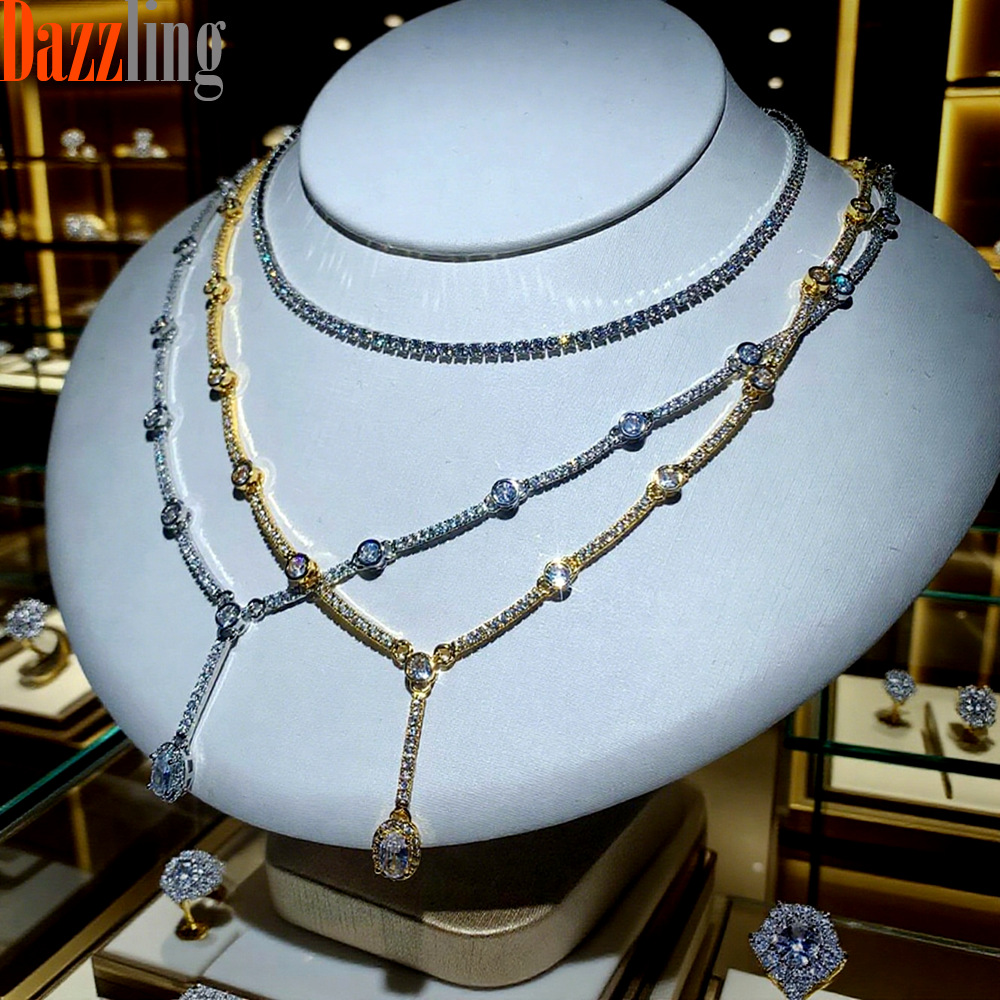 Cross-Border Trendy Diamond Necklace Shiny Long Tassel Clavicle Chain European and American Wedding Banquet Jewelry Choker