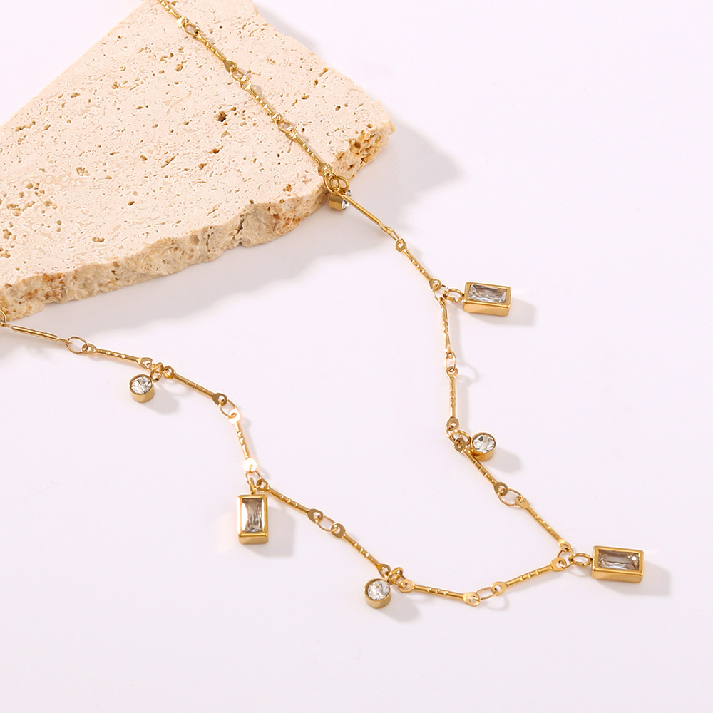 Ins Style Design Sense Niche Diamond Pendant Rectangular Round Female Titanium Steel Non-fading Shiny Trend Necklace Women