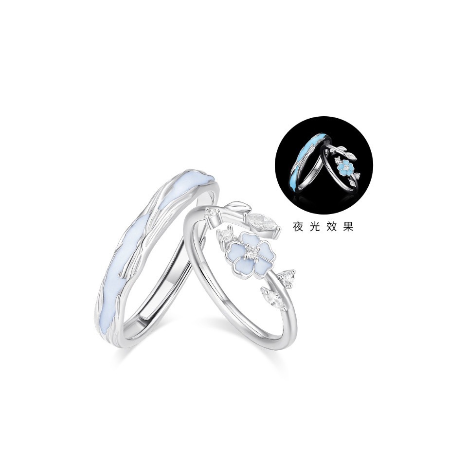 Luminous Camellia Flower Love Couple's Ring Romantic Lining Branch Luminous Design Adjustable Preference Jewelry