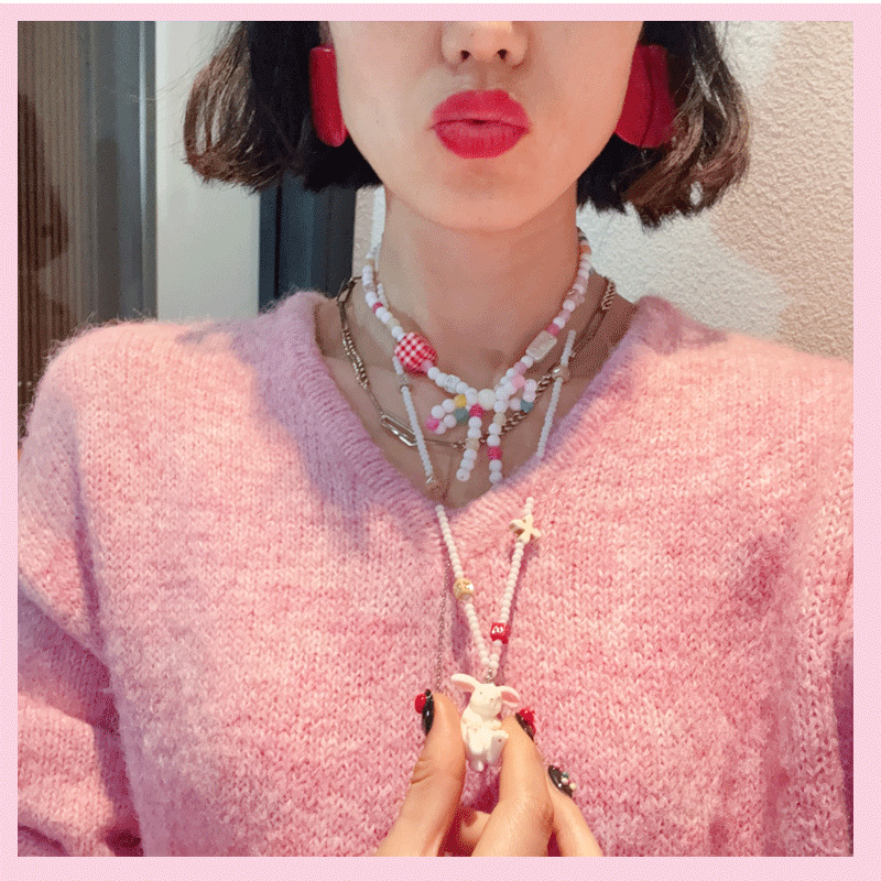 Ins Fashion Colorful Shiny Acrylic Beaded Dancing Star Dailou Rabbit Cartoon Short Necklace for Women