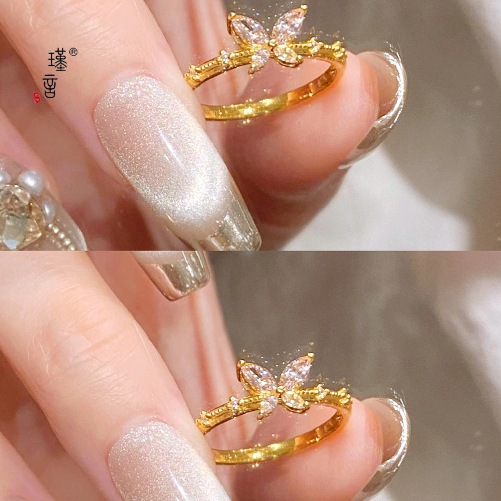 Zirconia Sparkling Butterfly Open Ring Similar to Jingyan Xiaohongshu, New Chinese Style High-End Dazzling Gift for Girlfriend