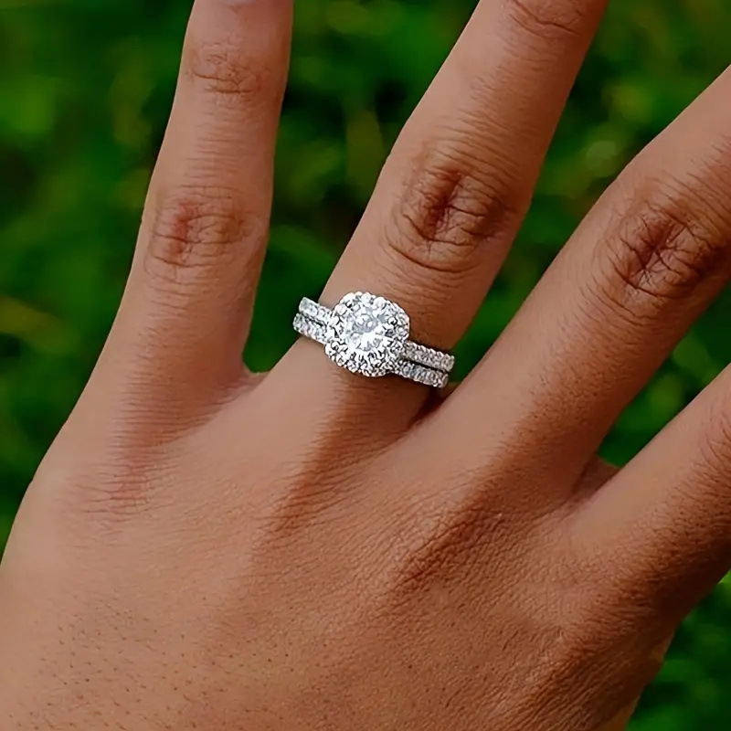 Cross-Border New Classic Charming Ring Inlaid with Shiny Zircon Ring, Fashionable and Versatile Jewelry
