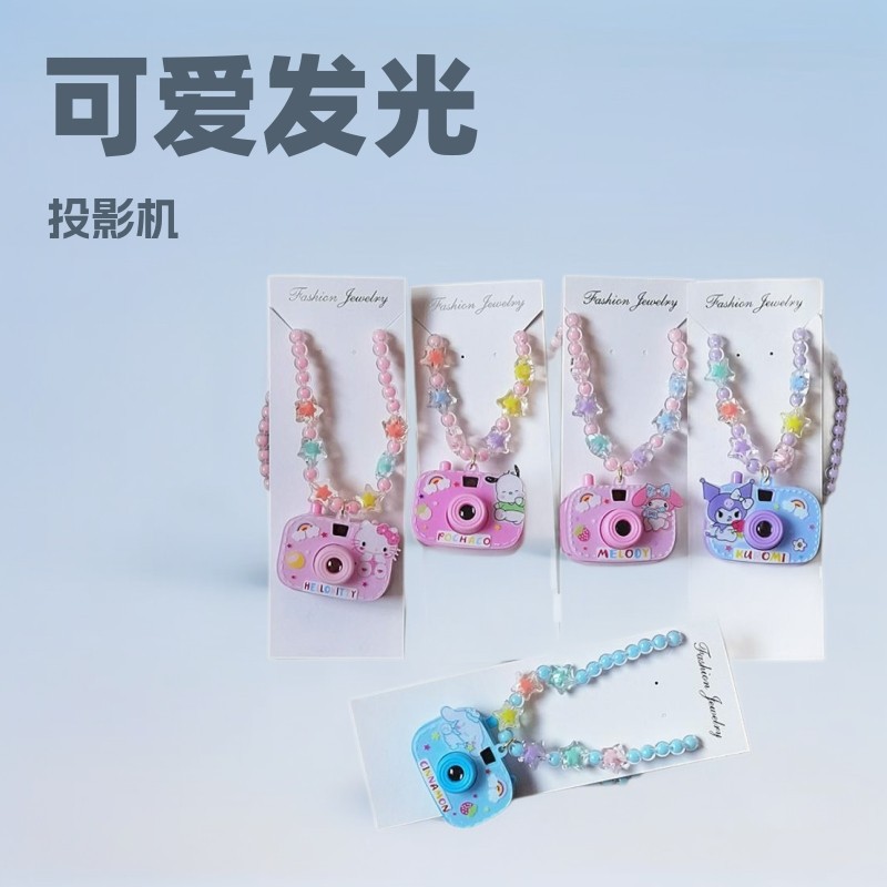 Cyber Celebrous Birthday Gift for Little Girls Sanrio Projection Camera Necklace Children's Jewelry Cute Luminous Toys Beaded