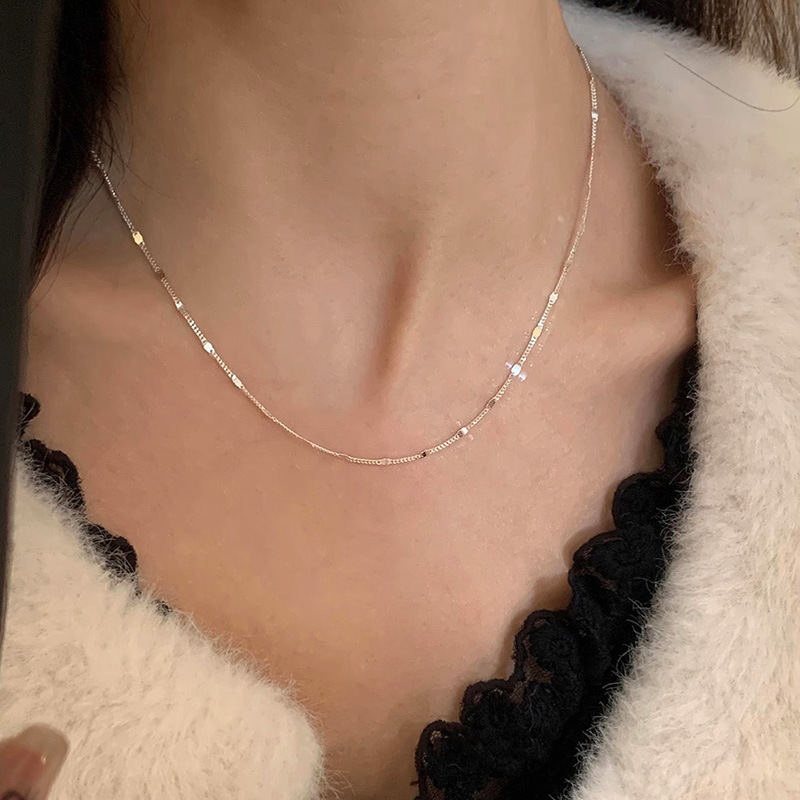 S925 Sterling Silver Sparkling Sequin Necklace Women's Stylish Fashionable Elegant Clavicle Chain Trendyy Versatile Exquisite Necklace