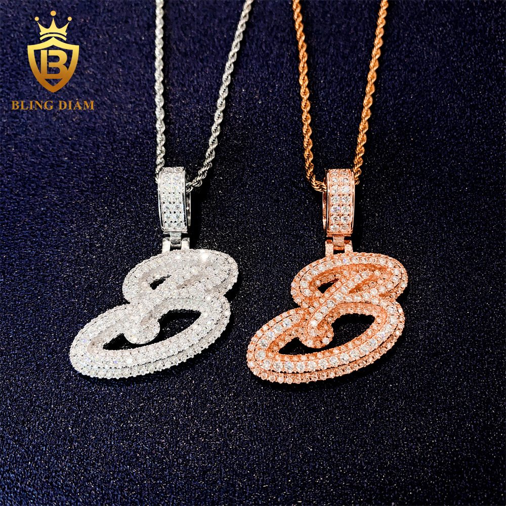hiphop jewelry cross-border hot 925 silver moissanite pendant hip-hop B letter pendant European and American trend