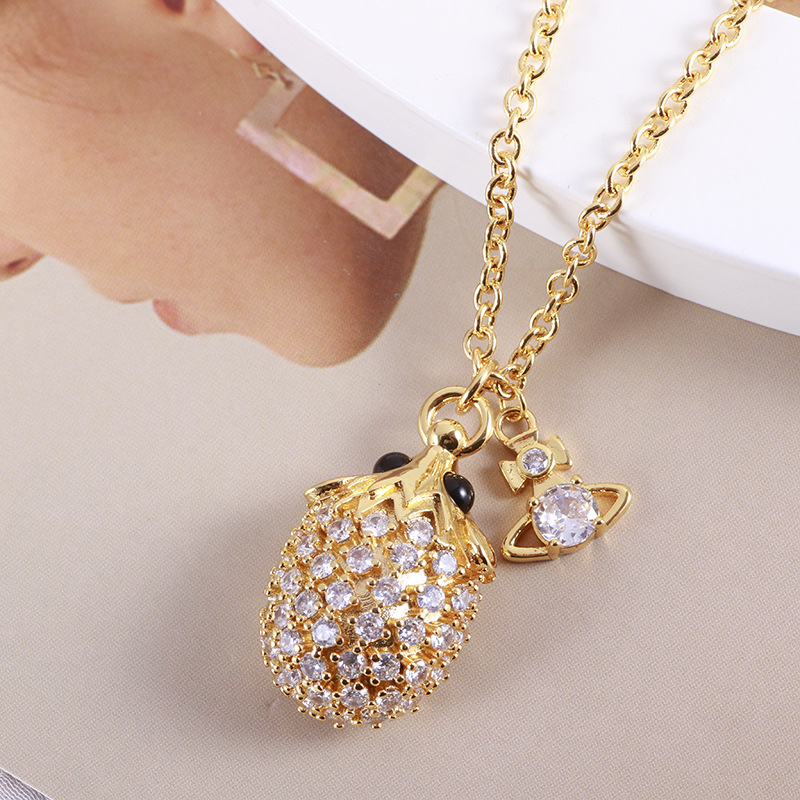 European and American jewelry wholesale shining full diamond cute little hedgehog shape planet pendant fashion medium necklace mixed batch female