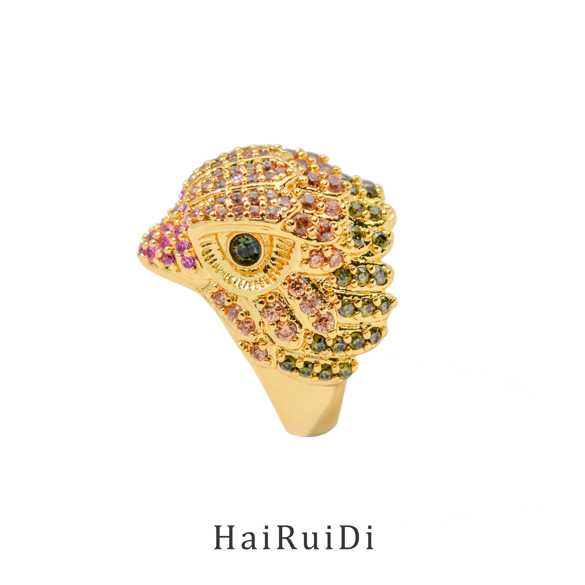 European and American Niche Light Luxury Kgl Lost-Wax Method Colored Diamond Zircon Eagle Head Engraved Ring, Exquisite, Cool, and Dazzling