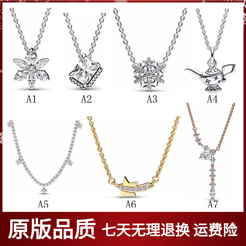 Pandora S925 sterling silver necklace sparkling snowflake pendant style shining fashion necklace clavicle chain