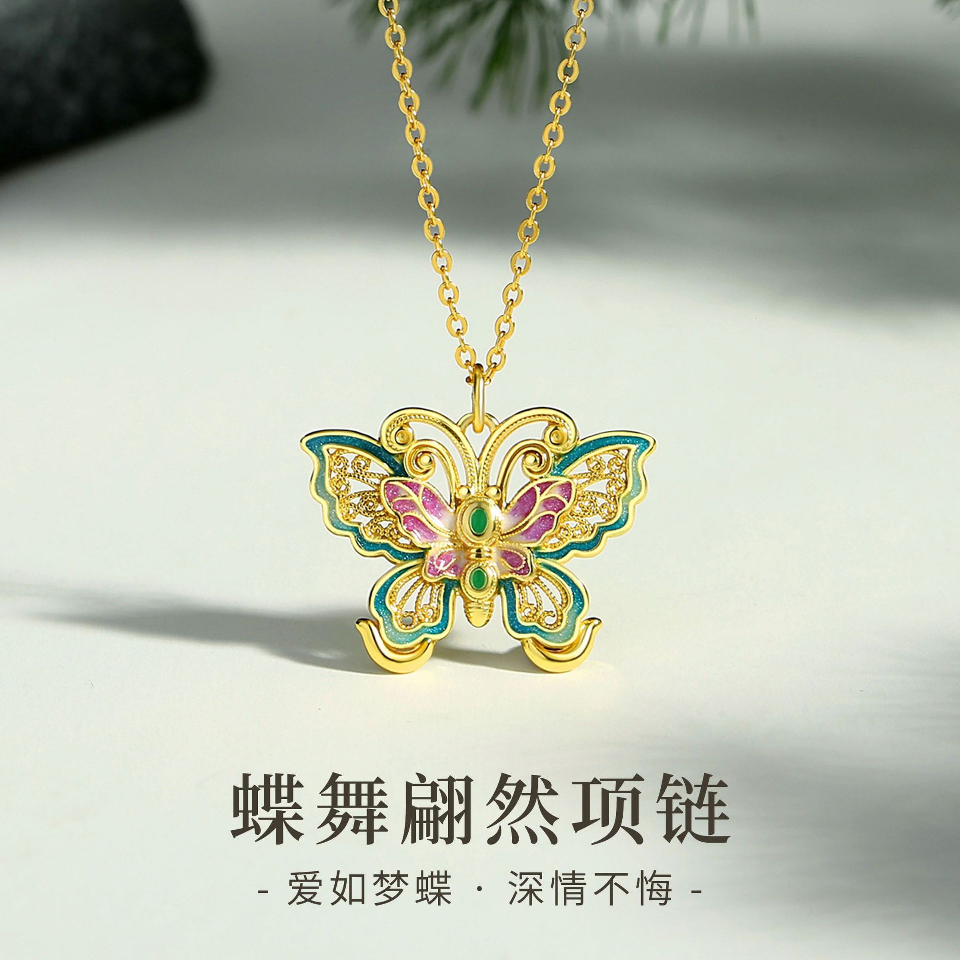 Luminous Tanabata Gift Little Red Riding Book with Silver 999 Chinese Niche Design Butterfly Necklace Wholesale