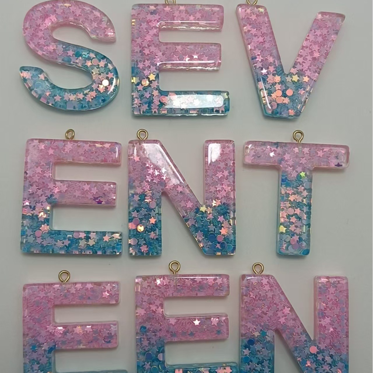Powder Blue Sequin Keychain Accessories Resin English Letter Pendant Hanging Drops of Glue Hair Card Accessories Wholesale