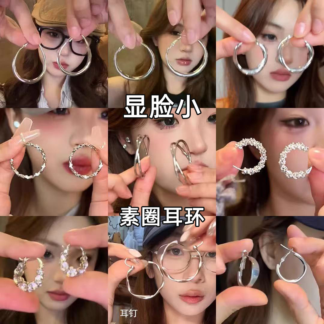Silver Simple Oval Plain Hoop Earrings for Women European and American Exaggerated Circle Earrings Accessible Luxury High-End Earrings
