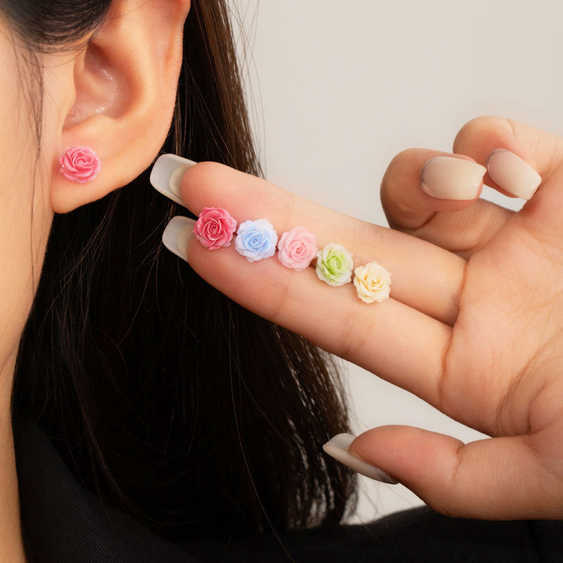Spring and Summer Fashion Sweet Flower Silver Pin Ear Studs Mori Color Rose Earrings Women's All-match Fresh Elegant Ear Jewelry