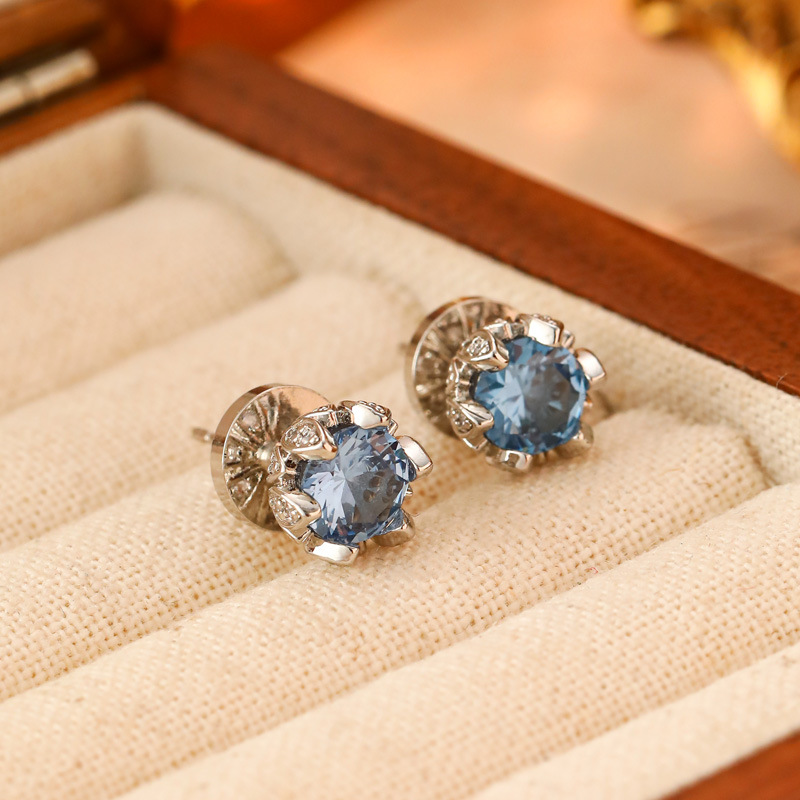 Elegant platinum-plated color imitation sapphire earrings Korean style women's zircon earrings copper silver-plated earrings ear jewelry