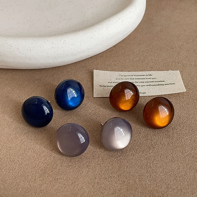 Flat Round Cat's Eye Stone Bun Bead Earrings for Women, Simple, Unique, Exquisite, Fashionable, Trendy Commuter Earrings