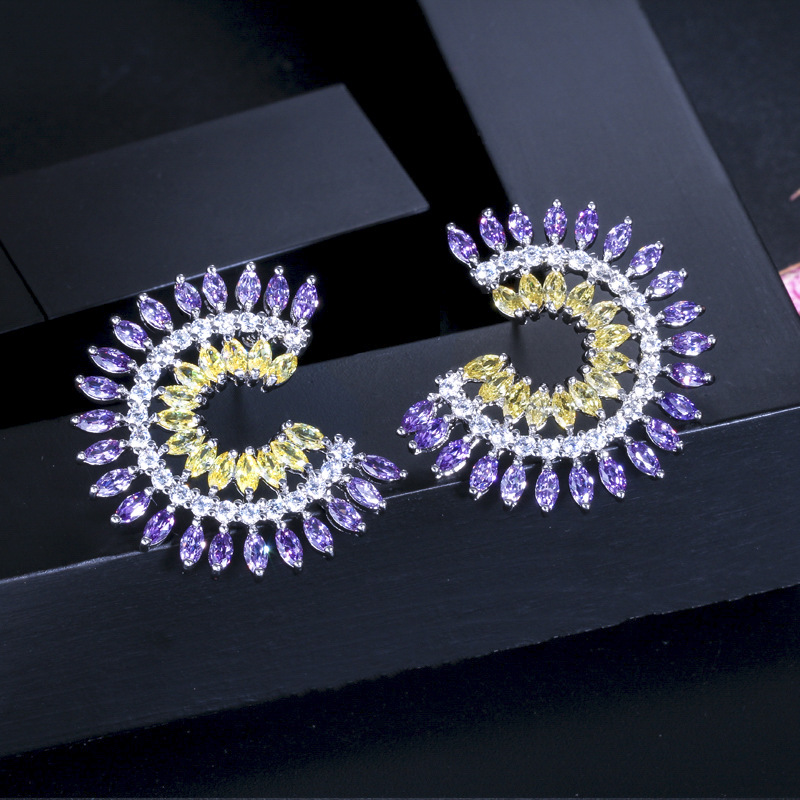 Factory direct Korean version of the earrings fashion Joker temperament shiny zircon earrings personality studded South Korea earrings