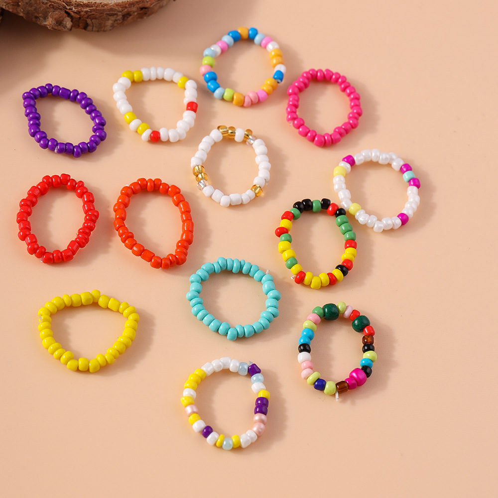 European and American Cross-Border Jewelry New Bohemian Style Rice Bead Ring Simple Small Fresh Beads Beaded Ring Bracelet