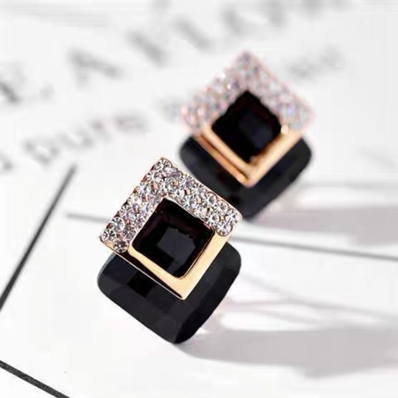 Japanese and Korean Style Simple Geometric Diamond Earrings for Women High-end Elegant Fashion All-match Trendy Earrings Internet Celebrity Earrings