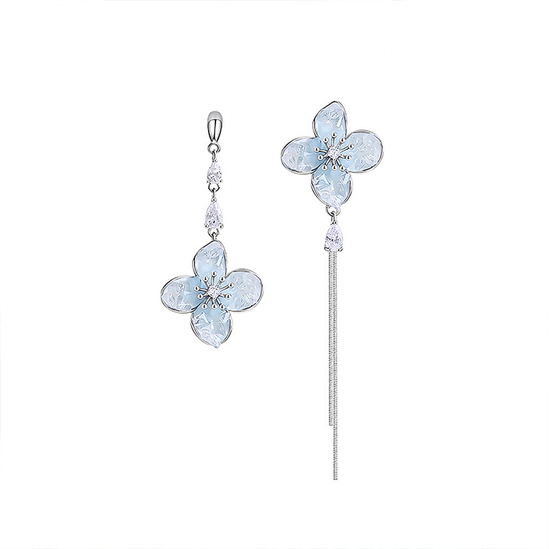 Sea Salt Ice Crystal Flower Earrings Women's Tassel New Earrings Four-Leaf Clover Blue Small Fragrance Earrings Accessible Luxury and High-End