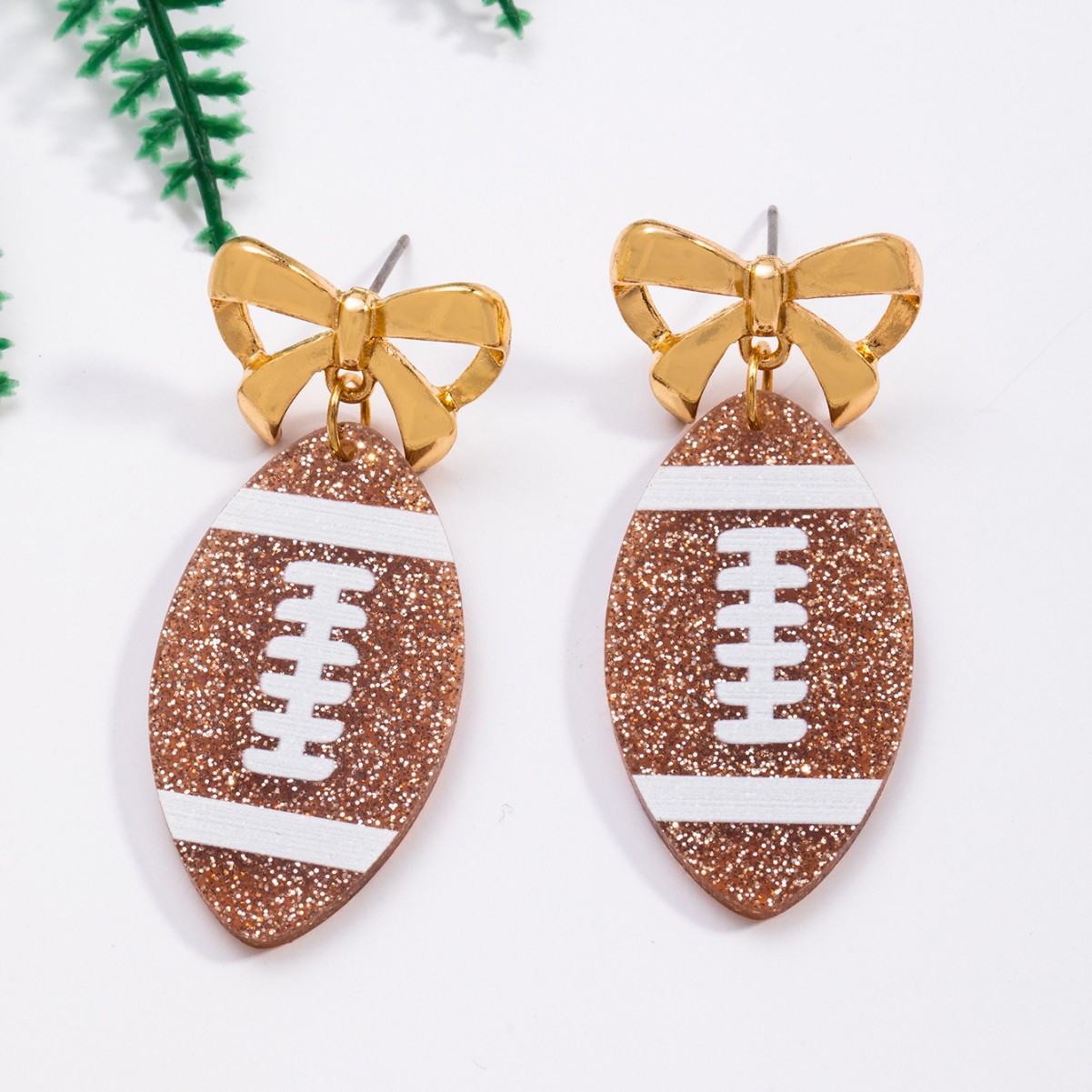 European and American Cross-Border Supply Jewelry Sequins Super Bowl Football Event Earrings Bow Earrings Sports Fans Women