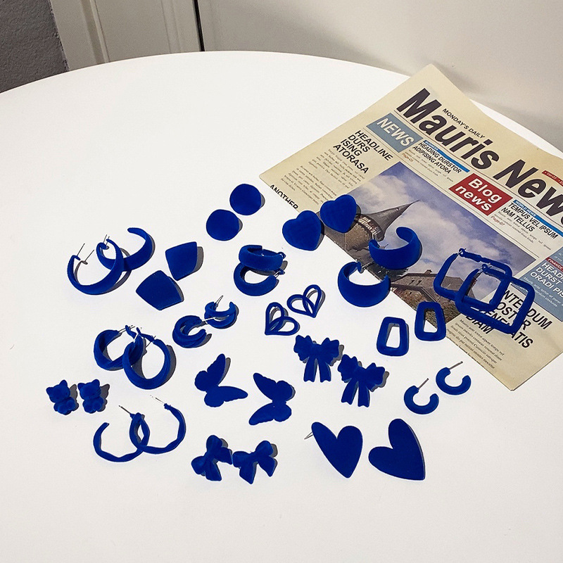 French Klein Blue Flocking Earrings Fashion Retro Stylish Bow Earrings Autumn and Winter Velvet Love Earrings Women
