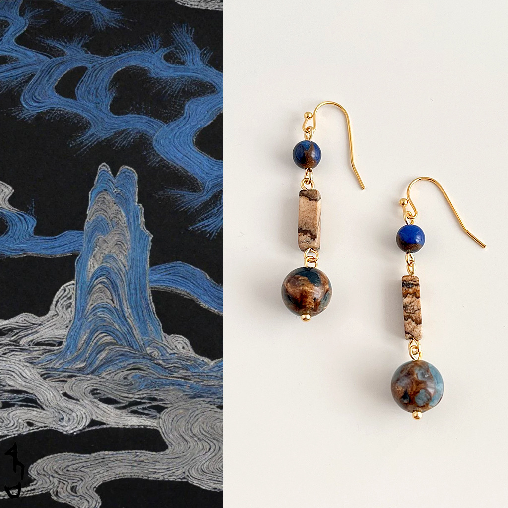 Wei Xi Sha ~ Guofeng Original Hand-made Natural Stone Blue Earrings Artistic Retro New Chinese Style Advanced Ear Jewelry