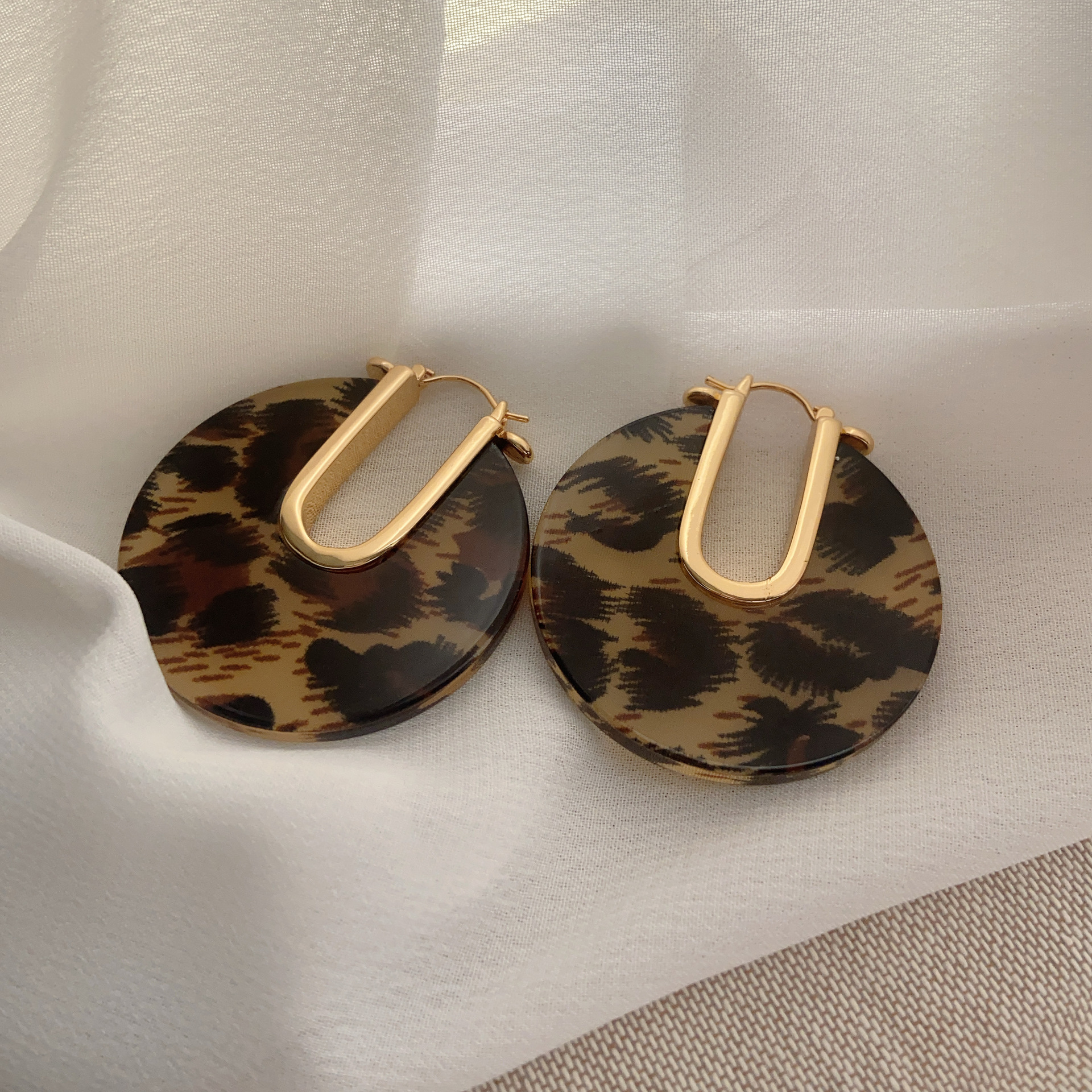 Niche Unique Design Leopard Circle Ear Buckle Fashion Light Luxury High-end Sense Earrings European and American Exaggerated Ear Accessories for Women
