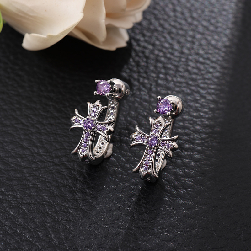Little Gold Cross Diamond Earrings Earrings Couple Style Punk Hip-Hop Trendy Personalized Earrings