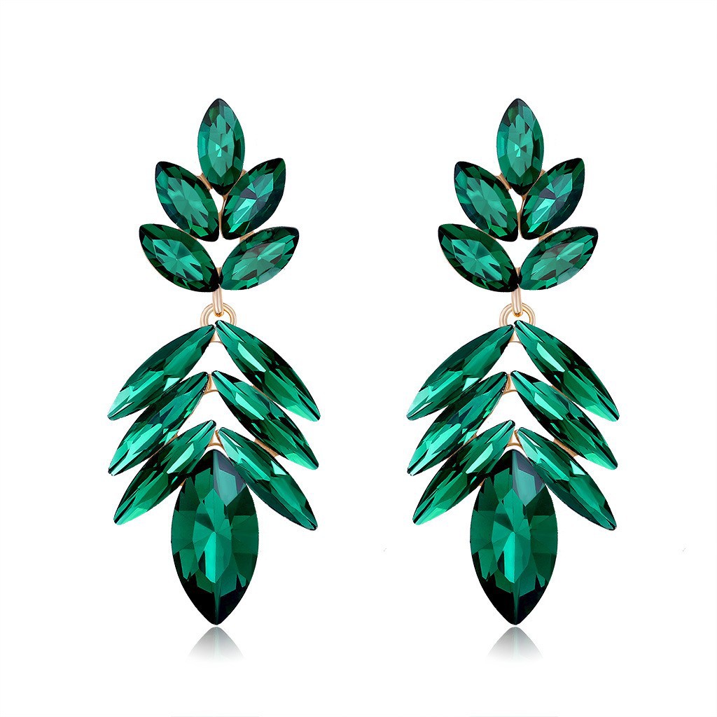 Sea Salt Ice Crystal Earrings Leaf Earrings Women's New Blue Crystal Pendant Wholesale Temperament Earrings Light Luxurious and High-End
