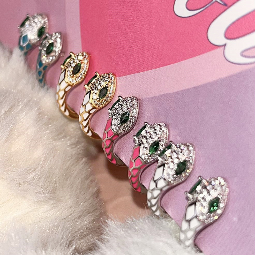 ins Style Niche Heavy Industry Snake-shaped Silver Plated Ear Buckle Hot Girl Style Ear Ring Green Eye Spirit Snake Earrings Sweet Cool Earrings