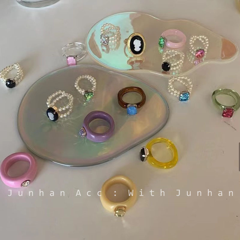 Jennie with/Korean ins acrylic irregular color rhinestone gemstone women's ring temperament sweet ring