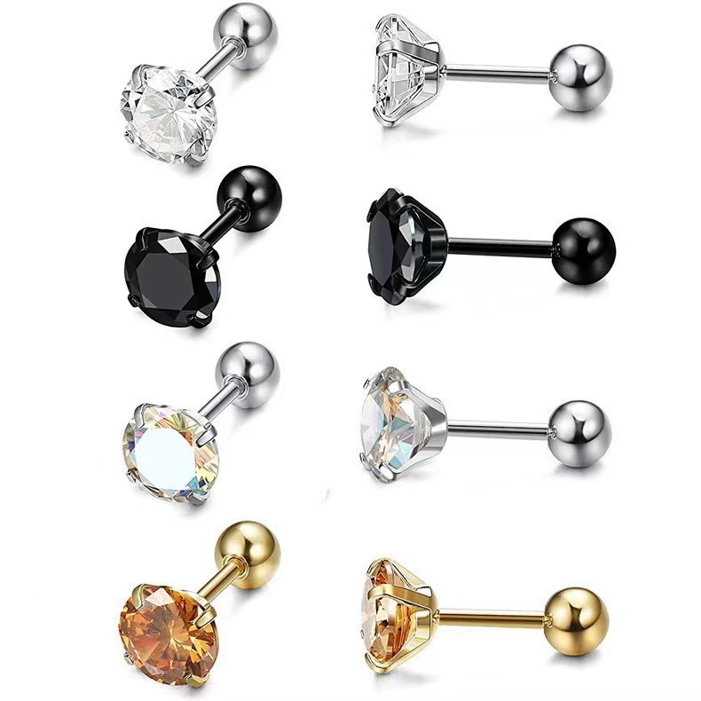 European and American Ear Bone Studs Stainless Steel Zircon Round Earrings Amazon Aliexpress Temushein Geometric Earrings