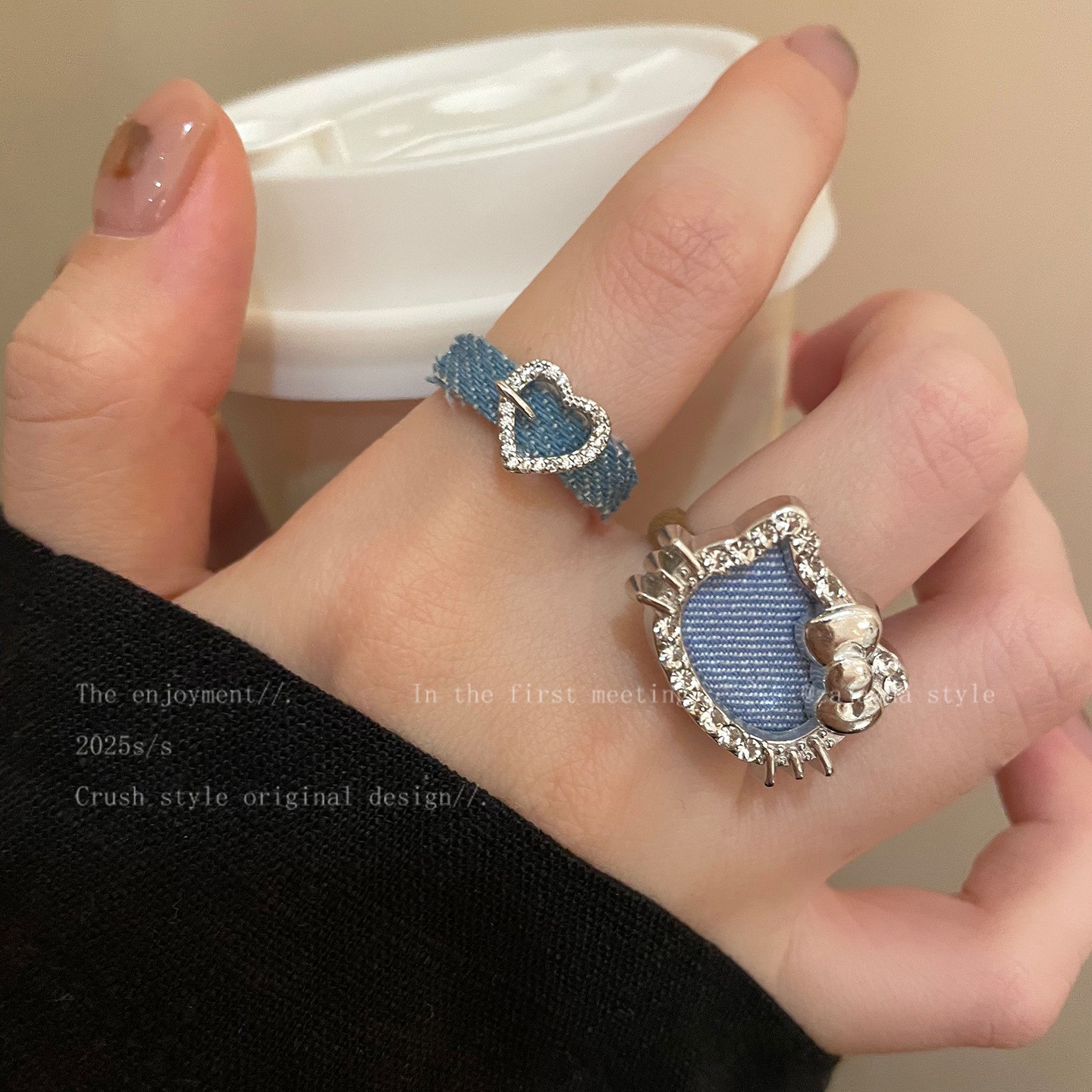 Girl's Heart ~ Cute Blue Denim Kt Ring for Women, New Simple Niche Design Versatile Stackable Ring