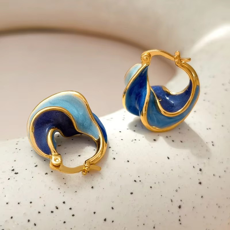 Cross-border New Retro Hong Kong Style Blue Oil Drop Spiral Pattern Ear Ring Elegant High-end Internet Celebrity French Earrings
