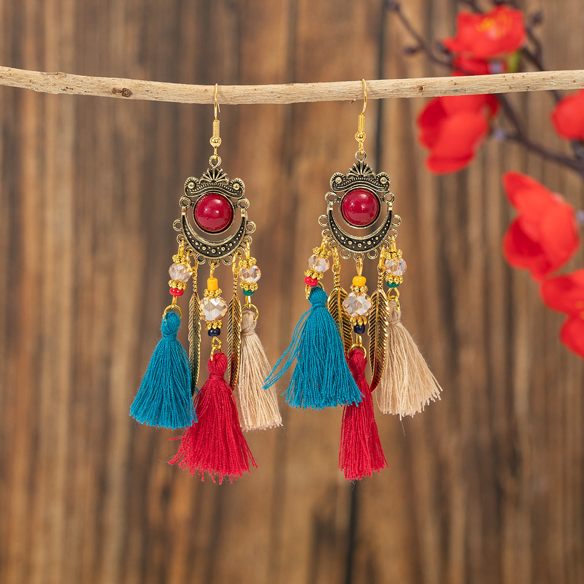 Ethnic style retro long tassel earrings ear hook bohemian Yunnan travel photography performance decorations wholesale